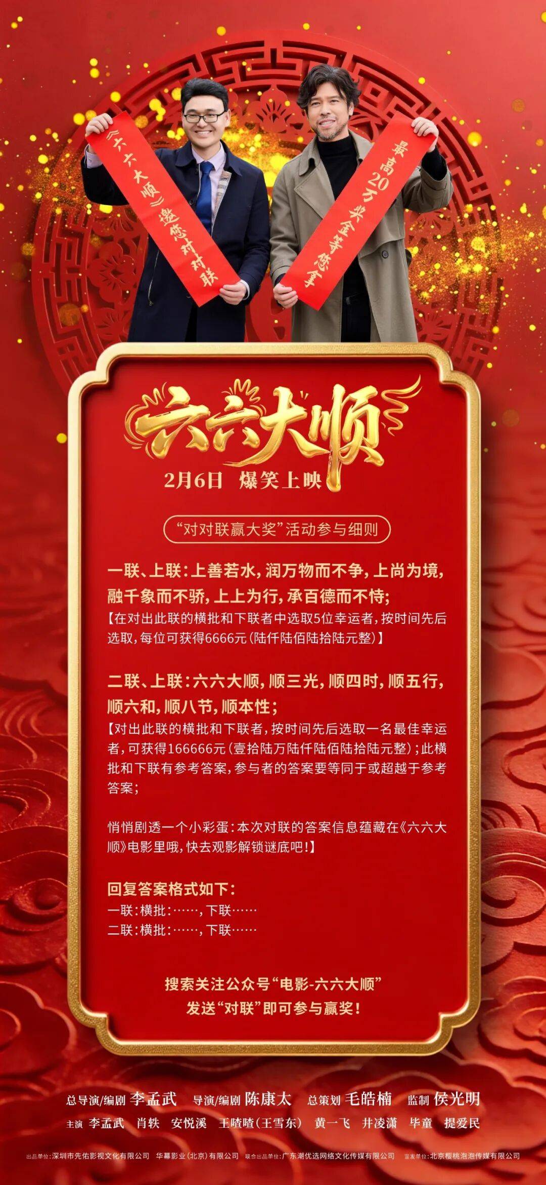 即将在2月6日热映的公路喜剧电影《六六大顺》,通过李大顺和李谱一起寻水的荒诞之旅,充满了温暖气息和爆裂笑点,完全为了吸引观众量身定制,提前点燃马年观影热潮!
